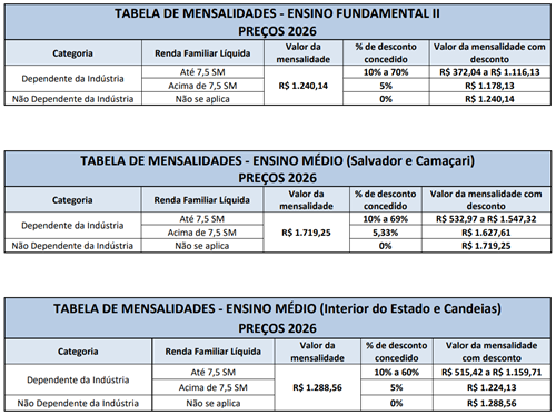 A Escola SESI Bahia está com matrículas para o ano letivo de 2026. Presente em nove municípios, a maior rede privada de ensino da Bahia completa mais de 50 anos de atuação, consolidando-se como referência em inovação, qualidade pedagógica e protagonismo estudantil nos Ensino Fundamental anos finais e Ensino Médio. Nossa comunidade educacional acolhe dependentes e não dependentes de profissionais da indústria.