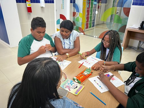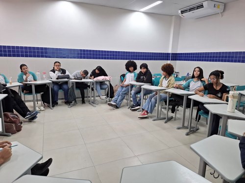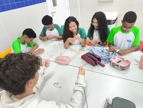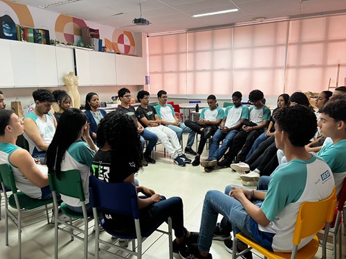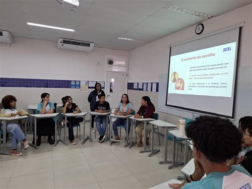 Nos dias 16 e 17 de julho, o Serviço Psicopedagógico Institucional da Escola SESI Milton Santos, representado pela psicopedagoga Adélia Almeida, em parceria com a professora de Ensino Religioso e Projeto de Vida, Joana Ribeiro, realizou atividades com os estudantes do 9º ano C do Ensino Fundamental e das 1ªs séries dos cursos técnicos de Informática B e Logística do Ensino Médio.