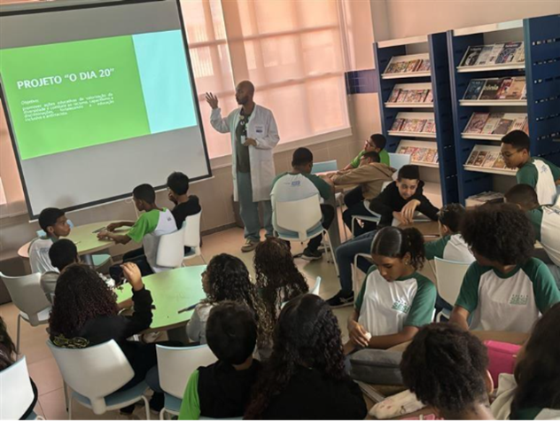 A abertura das atividades aconteceu na biblioteca, com uma proposta de sensibilização voltada à reflexão sobre o racismo e suas implicações na sociedade e no cotidiano escolar. Em seguida, foram desenvolvidas diversas ações pedagógicas com as turmas, integrando diferentes áreas do conhecimento.