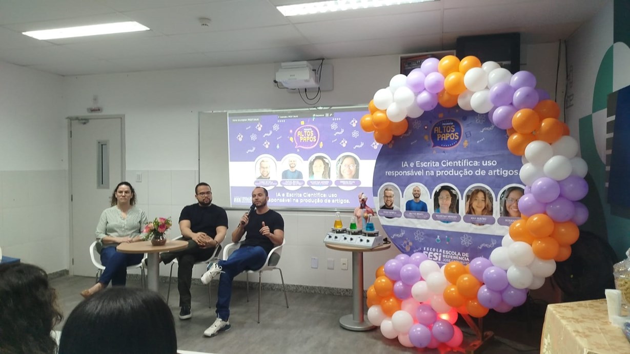 A nossa escola promoveu mais uma edição do Altos Papos no dia 30 de setembro, desta vez com o tema “IA e Escrita Científica: uso responsável na produção de artigos”, voltado para os alunos de Iniciação Científica. O encontro foi marcado por reflexões sobre as potencialidades e os limites do uso da inteligência artificial no meio acadêmico, destacando a importância da ética, da originalidade e do pensamento crítico na construção do conhecimento científico.