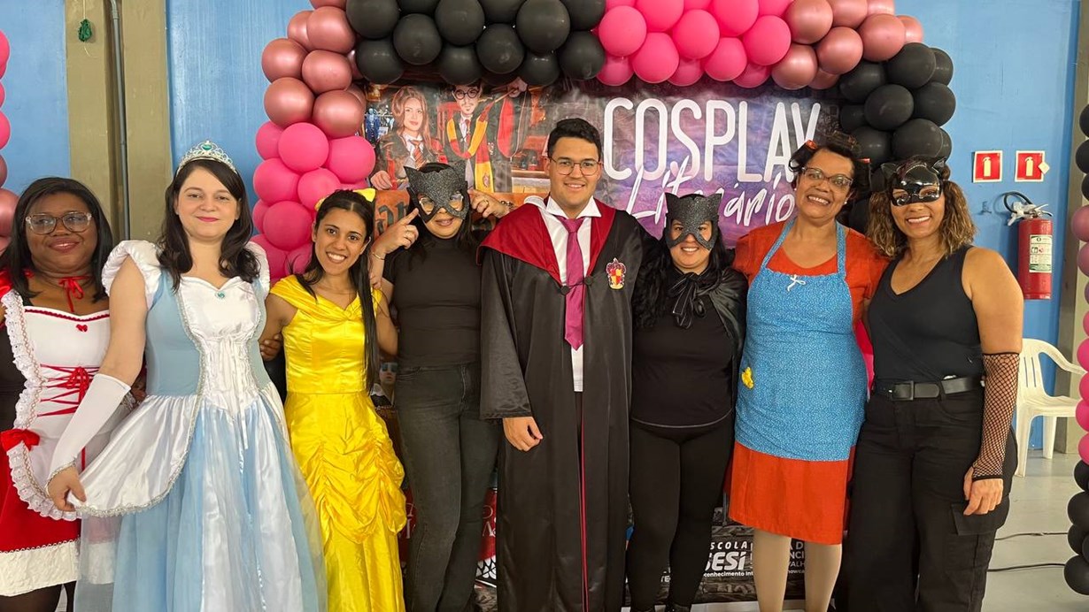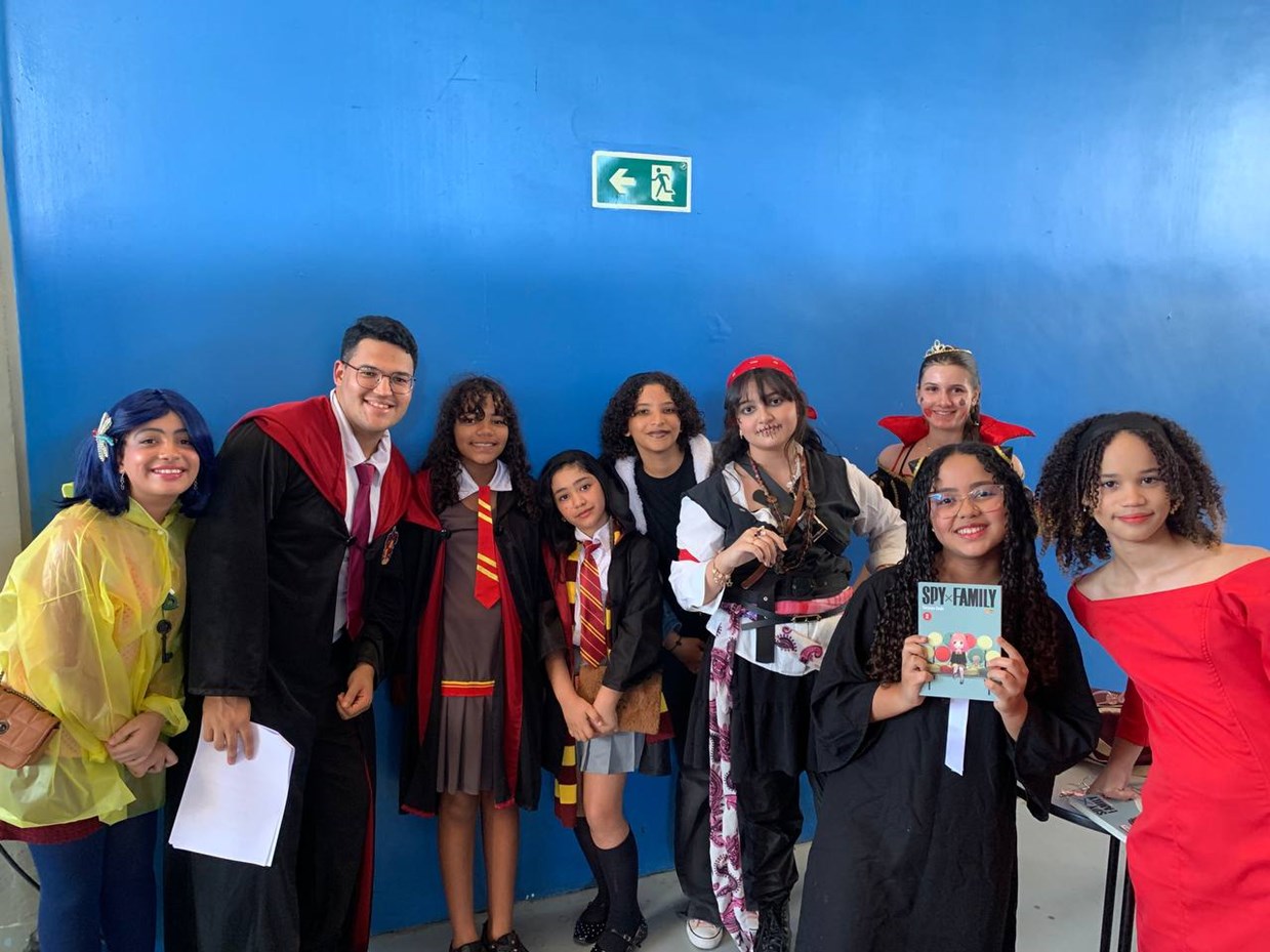 O Cosplay Literário é uma atividade que envolve leitura, arte e criatividade, permitindo que os estudantes vivam a vida dos personagens dos livros por meio de figurinos, maquiagem e interpretação. Mais do que uma encenação, essa prática promove o encantamento pela literatura, estimula o protagonismo e desperta o interesse pela leitura de forma lúdica e envolvente, transformando o ato de ler em uma experiência vívida e compartilhada. O nosso Cosplay Literário foi um sucesso!