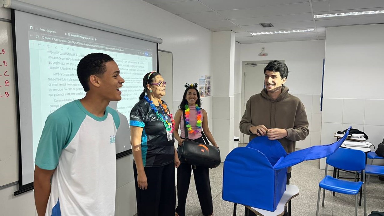 A semana de ambientação da Escola Sesi José Carvalho começou com uma apresentação musical e uma dramatização da equipe de professores da área de Linguagens, representando uma esquete sobre o retorno às aulas e protocolo de segurança. O momento foi muito divertido e descontraído, pois através da ferramenta lúdica, os estudantes puderam perceber a importância dos cuidados que deverão ser seguidos durante as aulas presenciais.