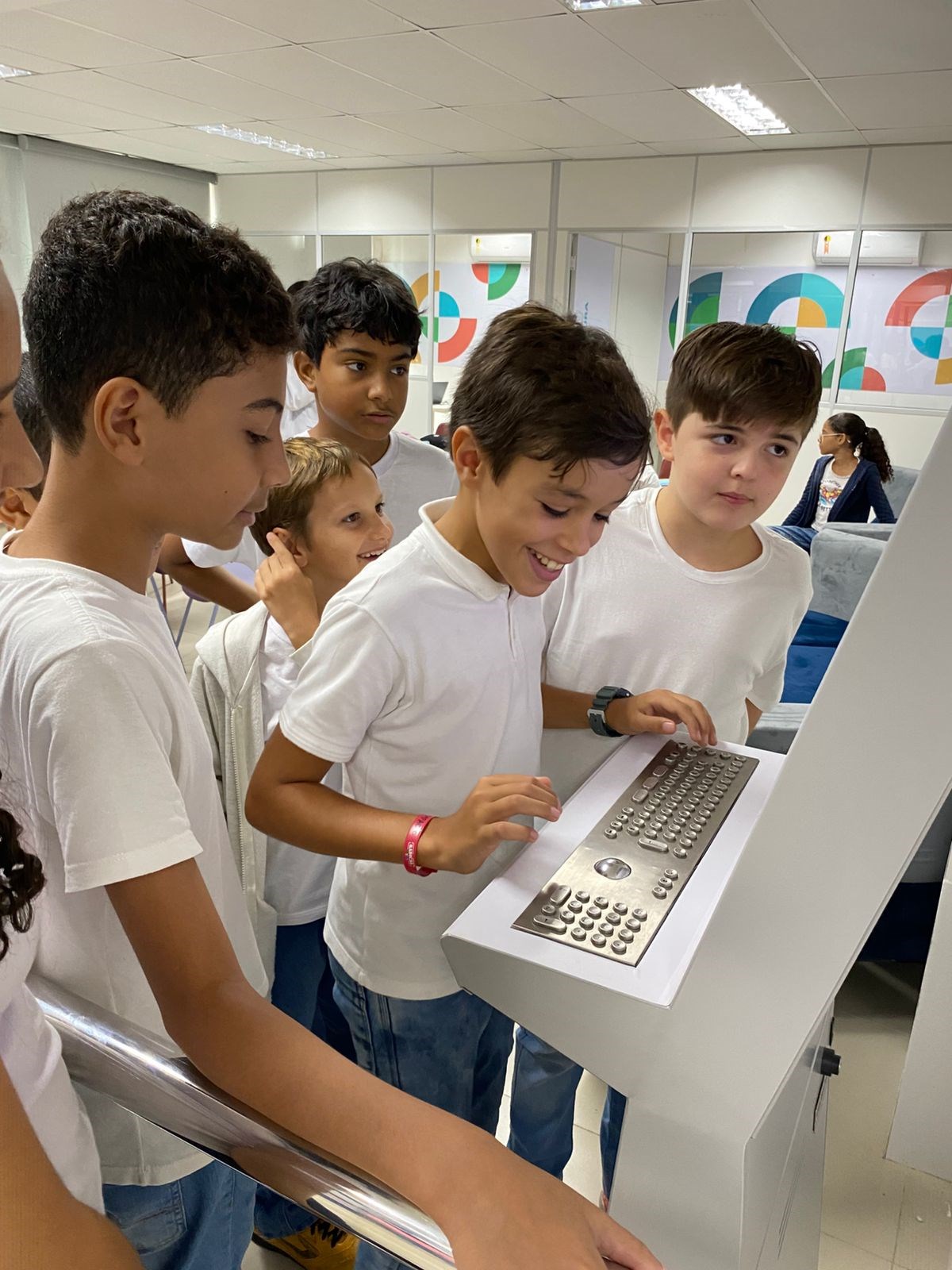 Durante a proposta, os estudantes exploraram o portal de pesquisa da escola por meio do totem digital, aprenderam a localizar conteúdos no sumário dos livros e utilizaram o dicionário como ferramenta de apoio. A atividade proporcionou uma rica experiência de aprendizagem, incentivando a leitura e a consulta a materiais impressos, além de reforçar a importância de fontes confiáveis no processo de pesquisa.