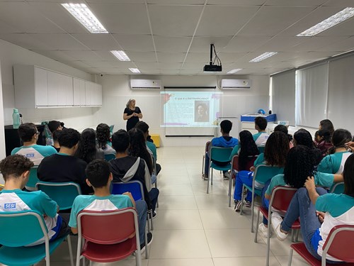 Para celebrar o Mês da Mulher, a Escola SESI Maria Odília Teixeira (Teixeira de Freitas) promoveu no dia 13 de março uma Roda de Conversa com os alunos da 2º série do Ensino Médio, com o tema “Mulheres e seus desafios: a luta pelos direitos femininos”. A atividade foi vinculada ao Eixo 5 dos Objetivos de Desenvolvimento Sustentável (ODS) – Igualdade de Gênero.