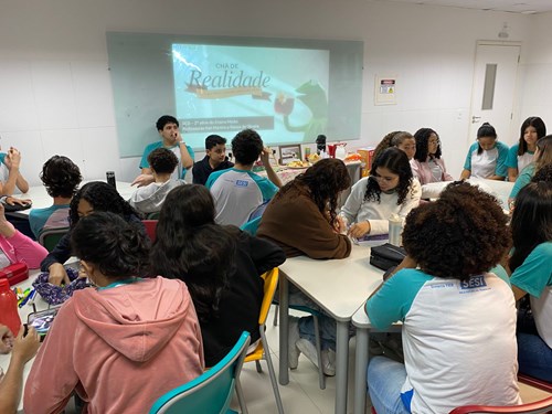 Com o objetivo de aproximar os estudantes das realidades da vida adulta, a Escola SESI Maria Odília Teixeira promoveu, junto à turma da 2ª série do Ensino Médio, a atividade Chá de Realidade. A proposta foi desenvolvida pelas professoras Katiane e Raíssa, com a participação da bibliotecária Adriane Balieiro, como parte do módulo de Matemática, abordando a temática da educação financeira.