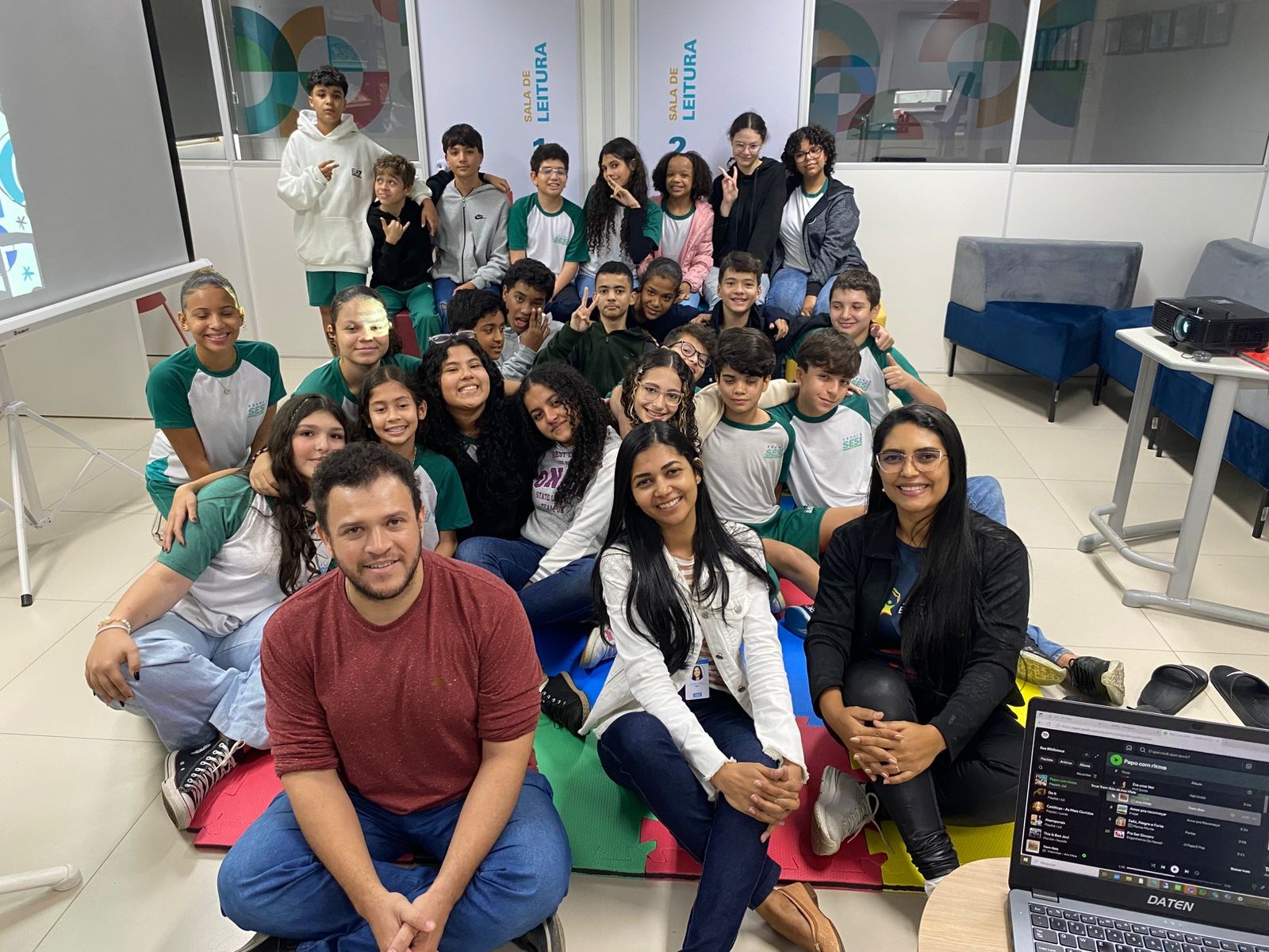 O encontro aconteceu na biblioteca da escola e uniu música, reflexão e diálogo, trazendo temas importantes acompanhados por músicas antigas e atuais que serviram como ponto de partida para despertar emoções e estimular reflexões nos alunos.