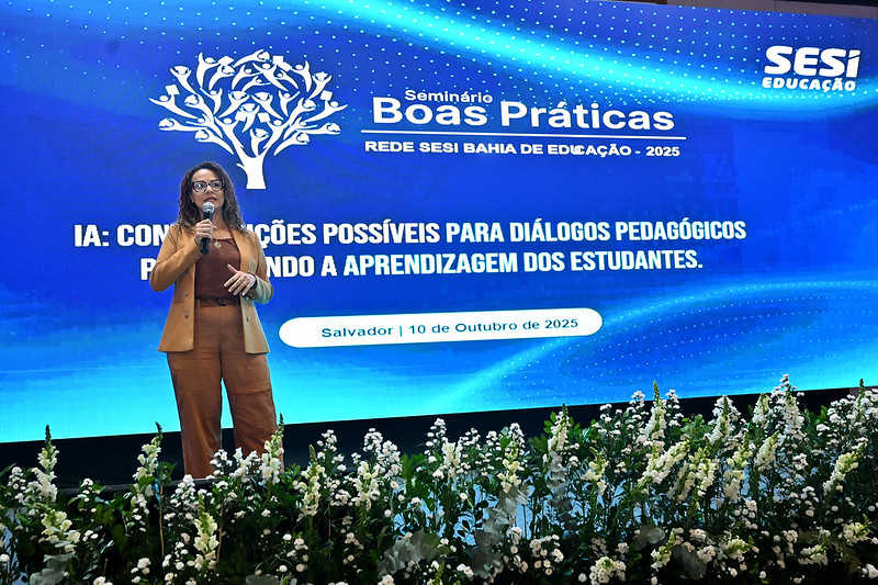 “O Seminário de Boas Práticas é um espaço de troca e inspiração, onde o protagonismo docente se alia à inovação para construir caminhos cada vez mais significativos para a aprendizagem. Nessa edição, pudemos ver como a inteligência artificial pode ser aliada no dia a dia dos professores como apoio de sequências didáticas e planejamentos otimizando o tempo para focarem na medicação dos estudantes. analisa Cléssia Lobo, superintendente de Educação e Cultura do SESI.