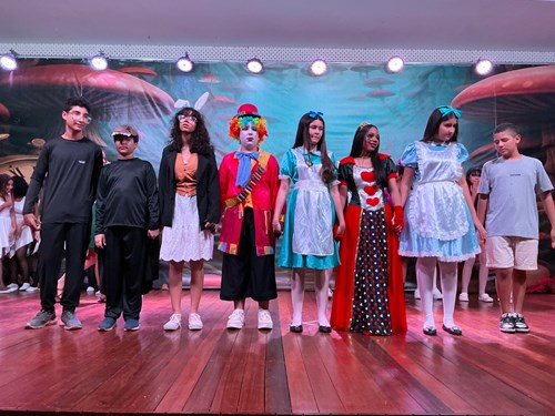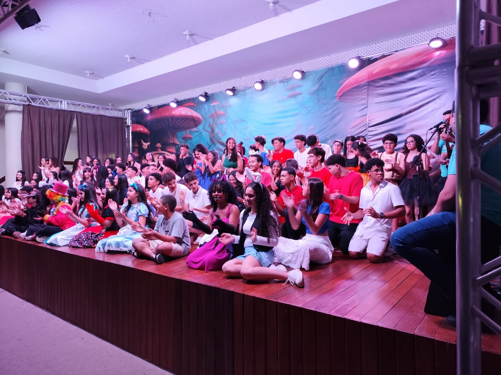 Os alunos do 8º ano protagonizaram um momento especial de integração e aprendizado ao apresentarem esquetes teatrais baseadas em contos e capítulos de romances infantojuvenis. A atividade fez parte de um projeto pedagógico que incentiva a leitura, a interpretação e a expressão artística.