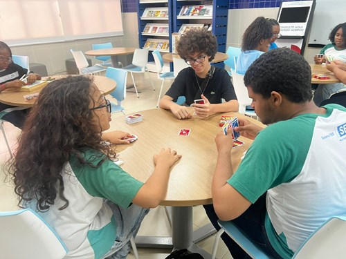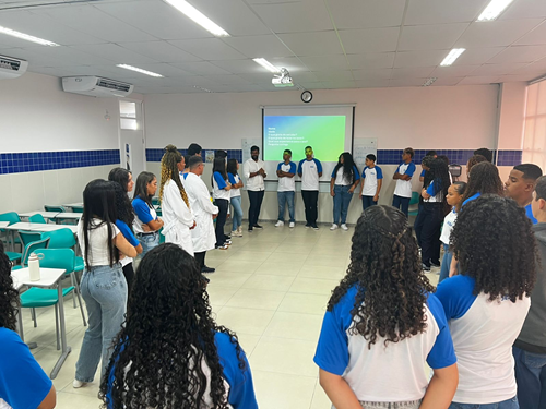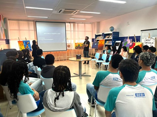 Nos dias 16 e 17 de julho, o Serviço Psicopedagógico Institucional da Escola SESI Milton Santos, representado pela psicopedagoga Adélia Almeida, em parceria com a professora de Ensino Religioso e Projeto de Vida, Joana Ribeiro, realizou atividades com os estudantes do 9º ano C do Ensino Fundamental e das 1ªs séries dos cursos técnicos de Informática B e Logística do Ensino Médio.