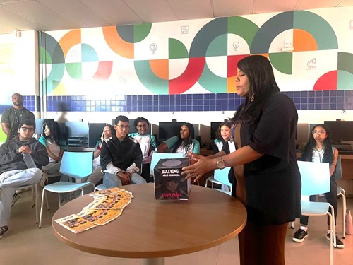 A professora Jaisy, promoveu uma atividade dividida em duas etapas, onde em grupos, os estudantes fizeram a curadoria literária no acervo da Biblioteca da instituição, a partir da Coleção Black Power, para eleger duas personalidades negras da história para desenvolver uma pesquisa sobre seus feitos e impactos na luta contra o apagamento das memórias culturais negras. Na segunda etapa o principal objetivo era compartilhar os descobrimentos com os colegas, promovendo o aprendizado coletivo e a reflexão sobre os temas. Assim, puderam discutir a importância de valorizar as histórias de lutas das populações negras e indígenas, além de pensarem sobre o impacto que a invisibilidade histórica dessas figuras tem na sociedade atual.