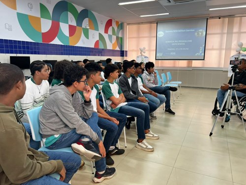 O Setor Socioemocional da Unidade Milton Santos trouxe para os nossos estudantes diversas ações referentes a semana da pessoa com deficiência. Durante toda a semana tivemos diferentes palestras, uma delas foi com o Deivide Monteiro, formado em jornalismo, áudio descritor, consultor, fotógrafo e ainda carrega o peso de ser paratleta de Jiu-Jitsu com diversas premiações, ele falou sobre sua história de vida, desafios e superação para os estudantes do 9º do fundamental II. Também Tivemos também uma roda de conversa com os alunos dos 6º anos, sobre a história de vida da estudante Ivana, aluna da unidade com paralisia cerebral espásticas membros inferiores. Os estudantes do 8º participaram de uma experiência sensorial. (sentindo na pele), eles ficaram de olhos vendados e tiveram que ultrapassar obstáculos, sendo guiado por outros colegas. Já os estudantes do 7º ano. experienciaram os óculos sensoriais para a pessoa com deficiência visual, produzidos pelos alunos do 1º ano do ensino médio, durante a aula de robótica.