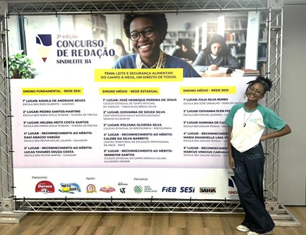 A estudante do SESI de Candeias, Geovana Ellen, conquistou destaque ao ser premiada no concurso de redação promovido pelo SINDILEITE. Demonstrando talento, dedicação e excelente domínio da escrita, ela alcançou o 2º lugar na competição, sendo reconhecida entre diversos participantes e se destacando entre jovens de diferentes escolas.