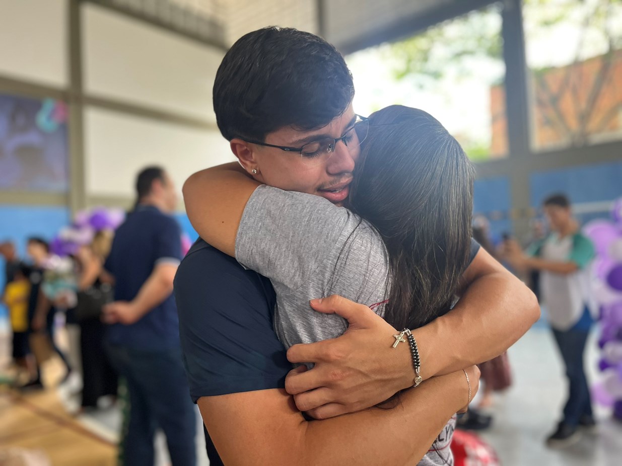 O encerramento da Terceira Série 2025 foi marcado por emoção, carinho e surpresas inesquecíveis: os professores prepararam um vídeo especial desejando sucesso na nova trajetória dos estudantes, seguido pelo sorteio de diversos brindes, como vouchers de academia, natação e outras experiências. Ao final, os alunos foram conduzidos à quadra, onde encontraram caixinhas surpresa preparadas pelas famílias, relembrando momentos da infância, e, em seguida, foram surpreendidos pela presença dos familiares, tornando o momento ainda mais emocionante e significativo para todos.