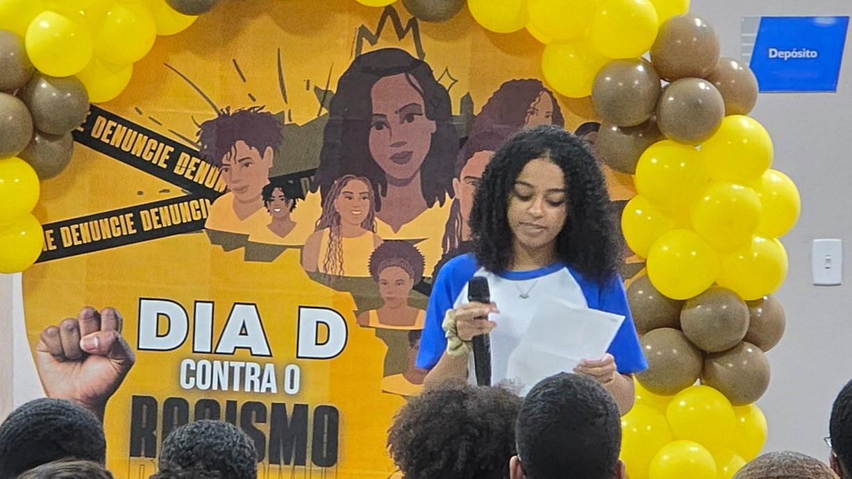 O Dia D contra o racismo, realizado mensalmente no dia 20, é um momento significativo de escuta, reflexão e conscientização em toda a comunidade escolar. A iniciativa busca promover o diálogo aberto sobre a temática do racismo, incentivando os estudantes a compreenderem suas origens, reconhecerem suas manifestações no cotidiano e se posicionarem de forma crítica e responsável diante de situações de preconceito e discriminação.