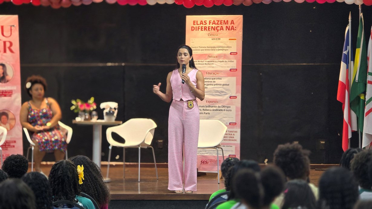 A programação contou com a participação da Profª Ana Karen, professora da UEFS; da Delegada da Polícia Civil da Bahia Lorena Almeida; da Profª Lizandra Santana, professora de História; e de Nina Giselle, capitã da Polícia Militar do Estado da Bahia, comandante da Ronda Maria da Penha do Portal do Sertão.
