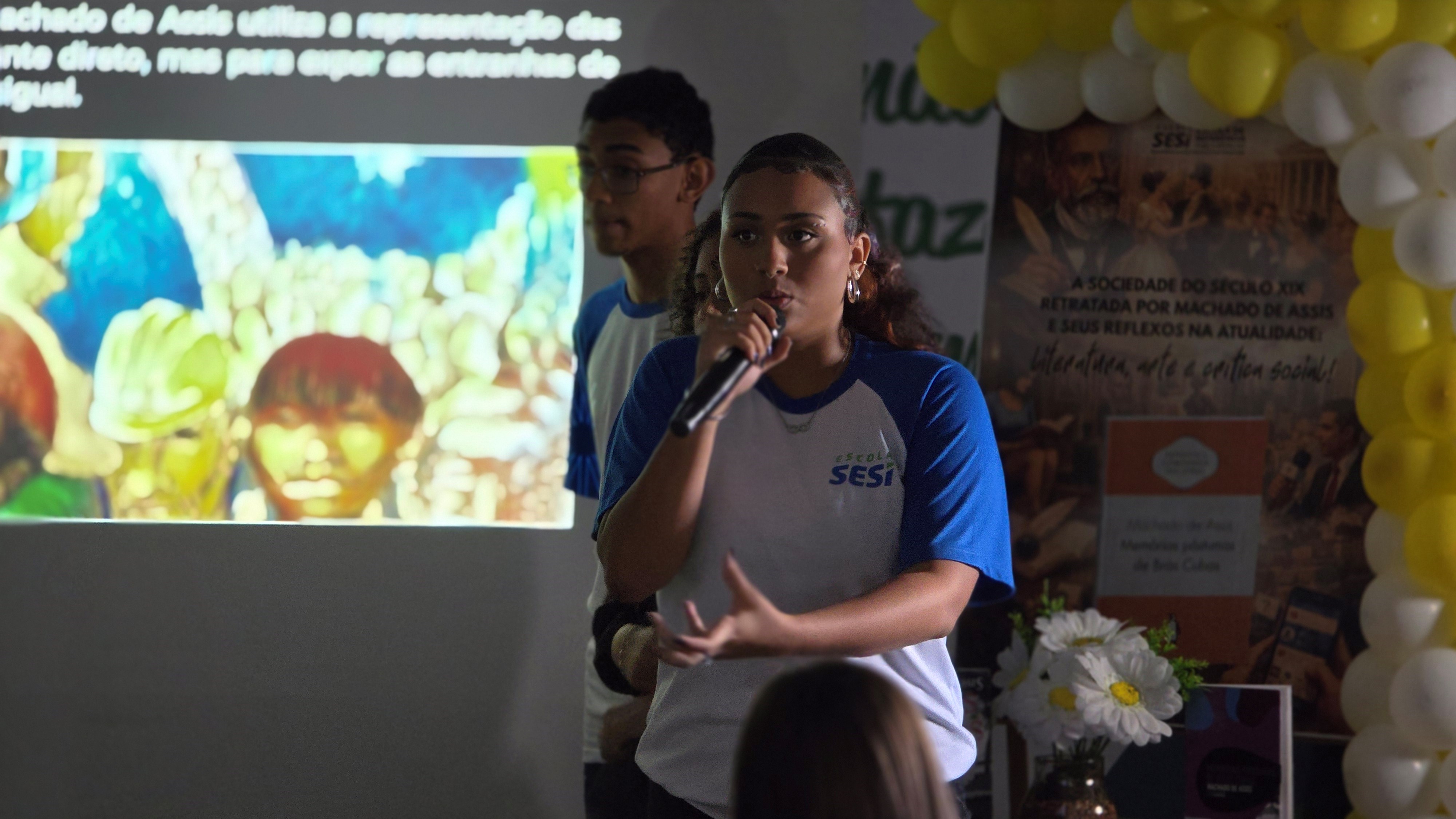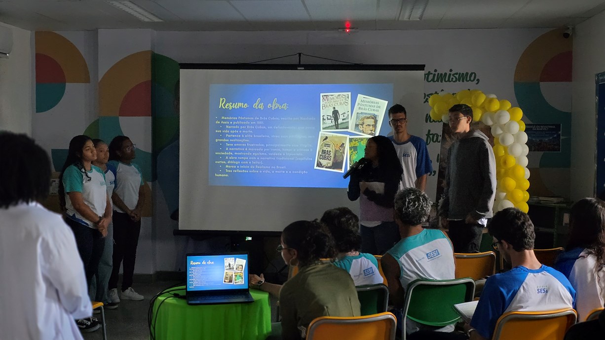 A área de Linguagens, em parceria com a Biblioteca, promove a atividade com a 3ª série, à luz do tema “A sociedade do século XIX retratada por Machado de Assis e seus reflexos na atualidade: literatura, arte e crítica social”. A proposta apresentada em grupo, com análise da obra Memórias Póstumas de Brás Cubas , paradidático da turma, e conexões com diferentes linguagens artísticas, estimulando a reflexão crítica dos estudantes.
